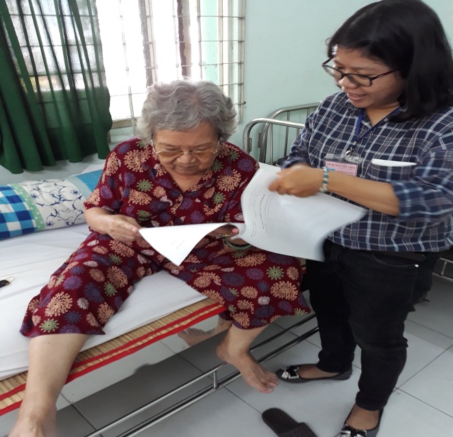 Hỗ trợ cụ bà N.T.N đi khám mắt và lấy thuốc