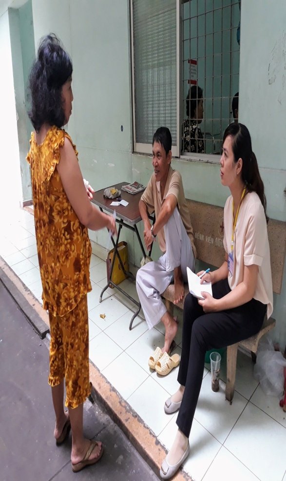 Trường hợp 2: chị T.K.N (41 tuổi) được chẩn đoán là bị tăng huyết áp, theo dõi tình trạng xuất huyết não, đau dạ dày. Bệnh nhân nhập viện nhưng không có người thân chăm sóc, có BHYT nhưng không đủ điều kiện chi trả tiền viện phí. Nhận được thông tin từ  Khoa Nội Tổng hợp 1, nhân viên Tổ Công tác xã hội đã tới thăm hỏi và tìm hiểu tình hình bệnh nhân. Sau khi biết được hoàn cảnh khó khăn của bệnh nhân, Tổ đã hướng dẫn bệnh nhân viết đơn xin hỗ trợ tiền viện phí và liên hệ với người nhà bệnh nhân giúp bệnh nhân hoàn thành các thủ tục xin hỗ trợ viện phí.  Sau khi sức khỏe  đã ổn định và được bác sĩ cho xuất viện Tổ đã giúp bệnh nhân được hỗ trợ một phần viện phí từ Hội Chữ Thập Đỏ của bệnh viện.