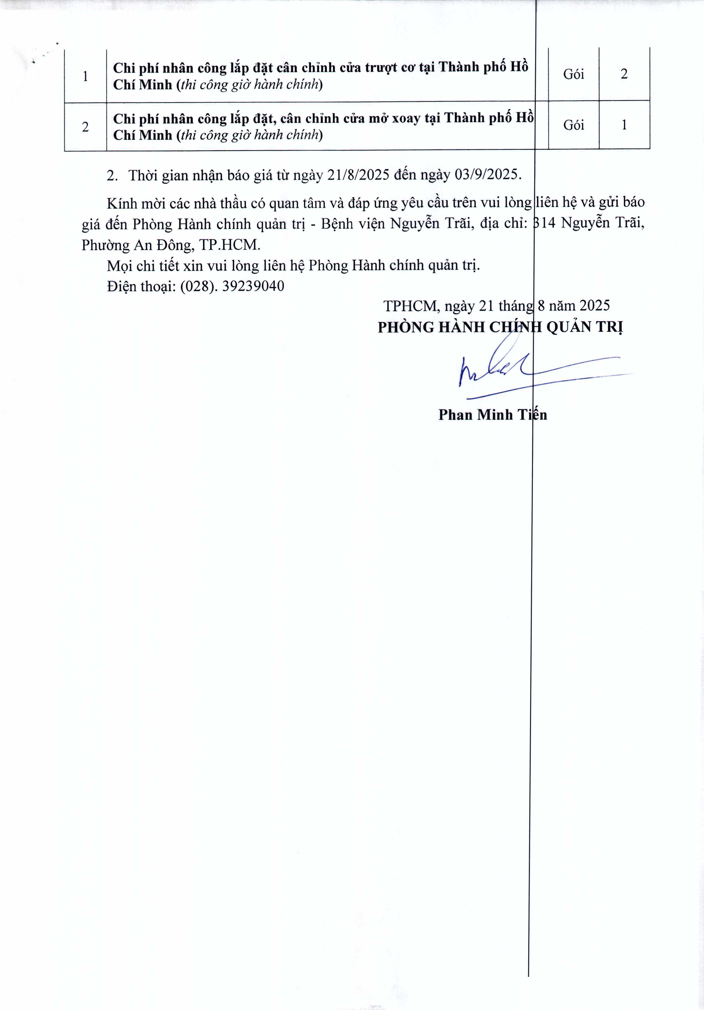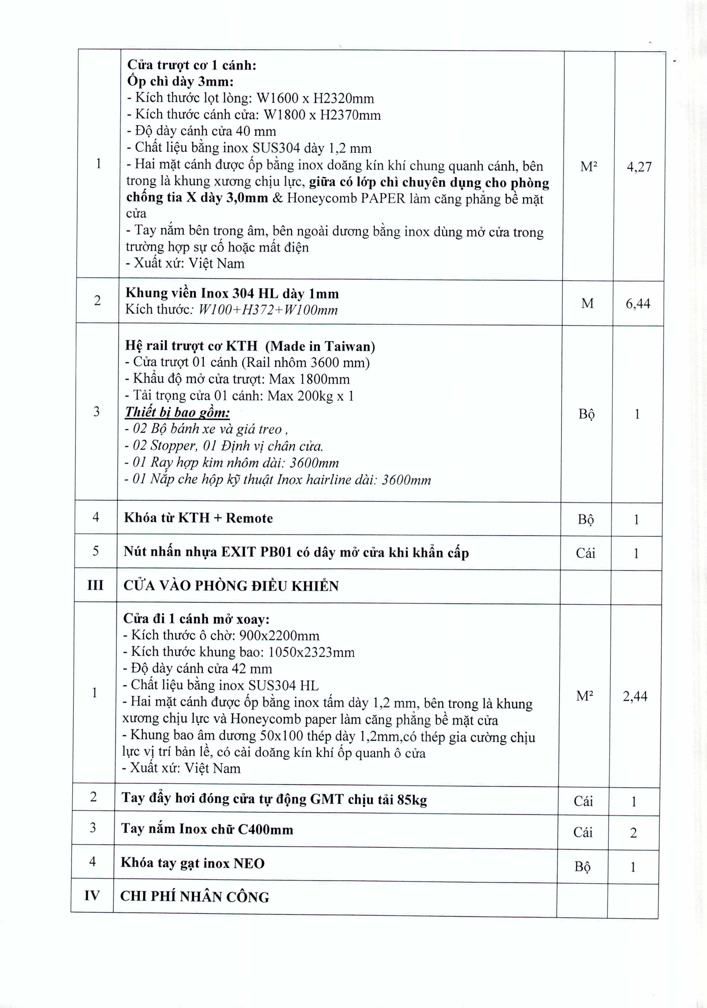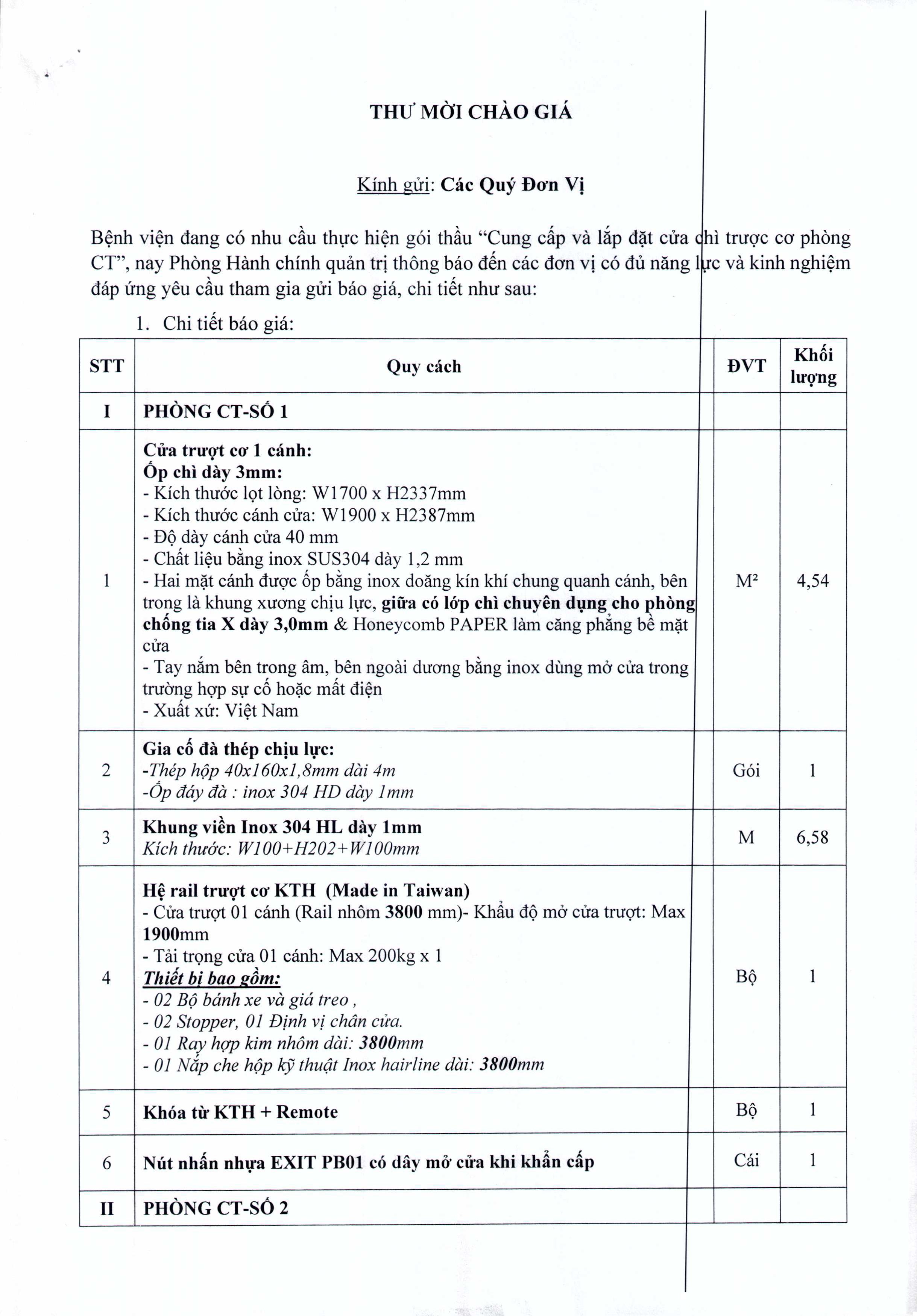 Thư mời chào giá Cung cấp và lắp đặt cửa chì trượt cơ phòng CT