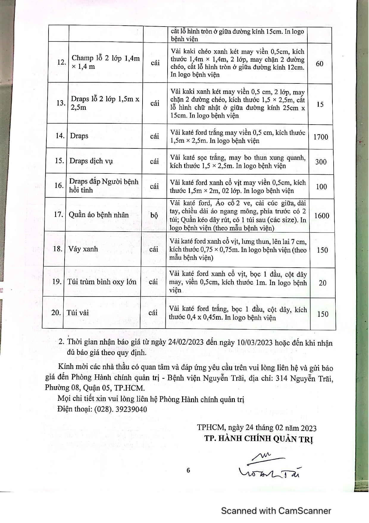 Thư mời chào giá mua sắm đồ vải y tế cho bệnh viện năm 2023