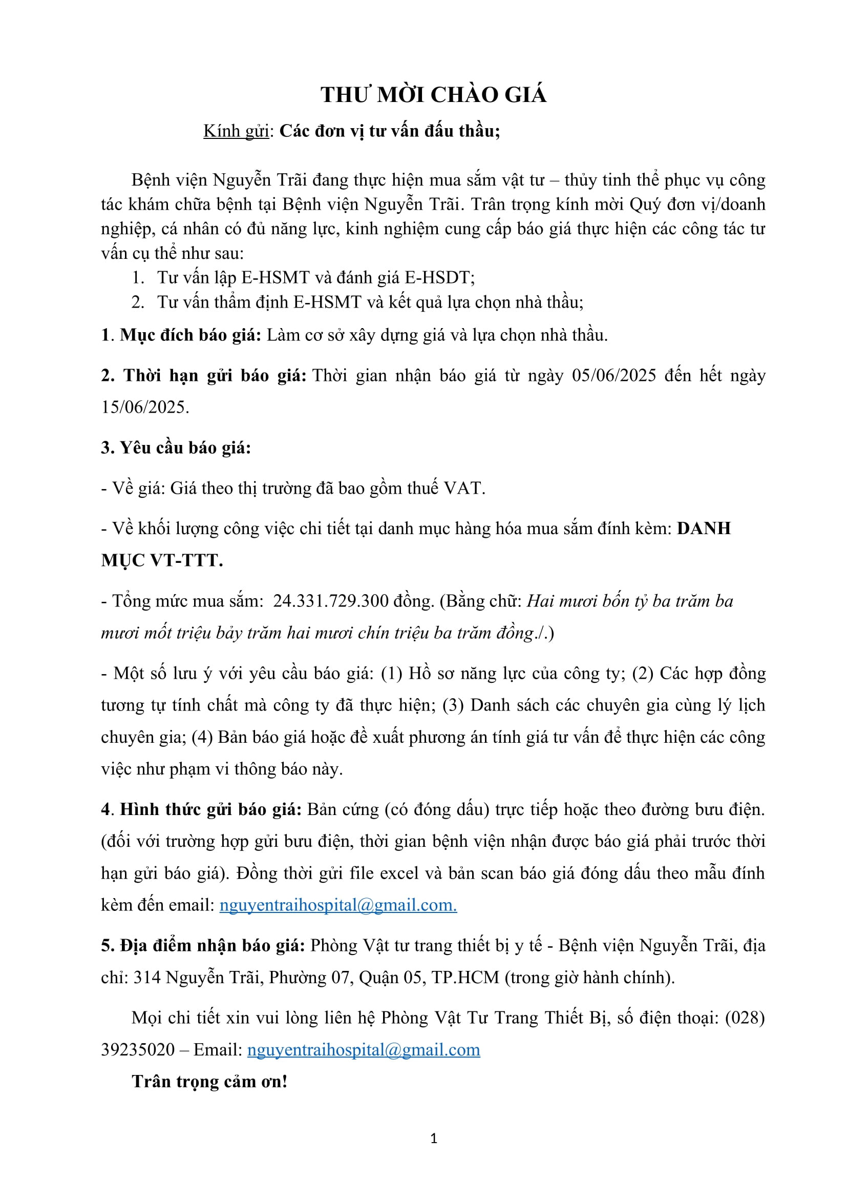 Thư mời chào giá mua sắm vật tư – thuỷ tinh thể