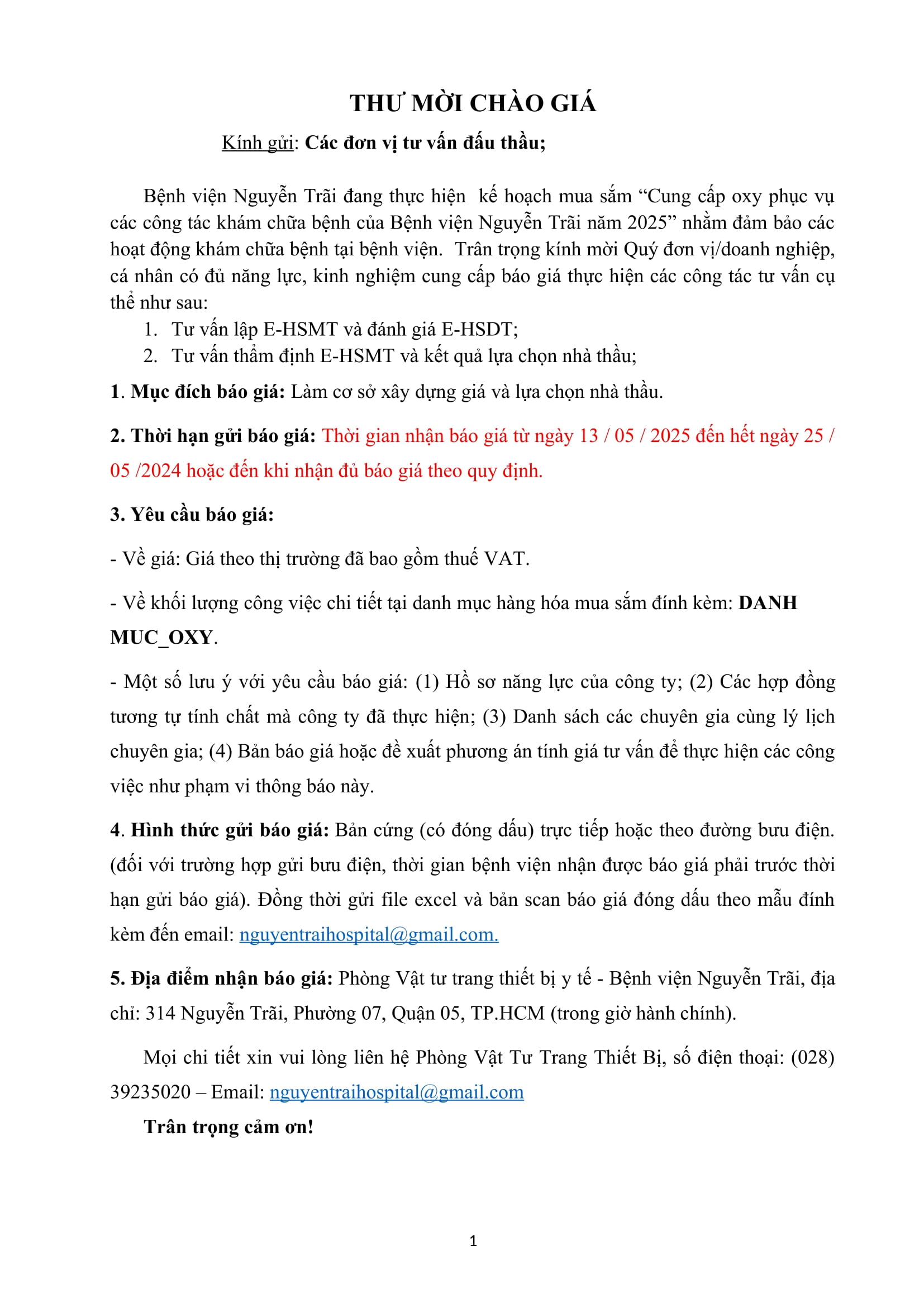 Invitation to submit bids for consulting services for the 2025 oxygen supply tender.