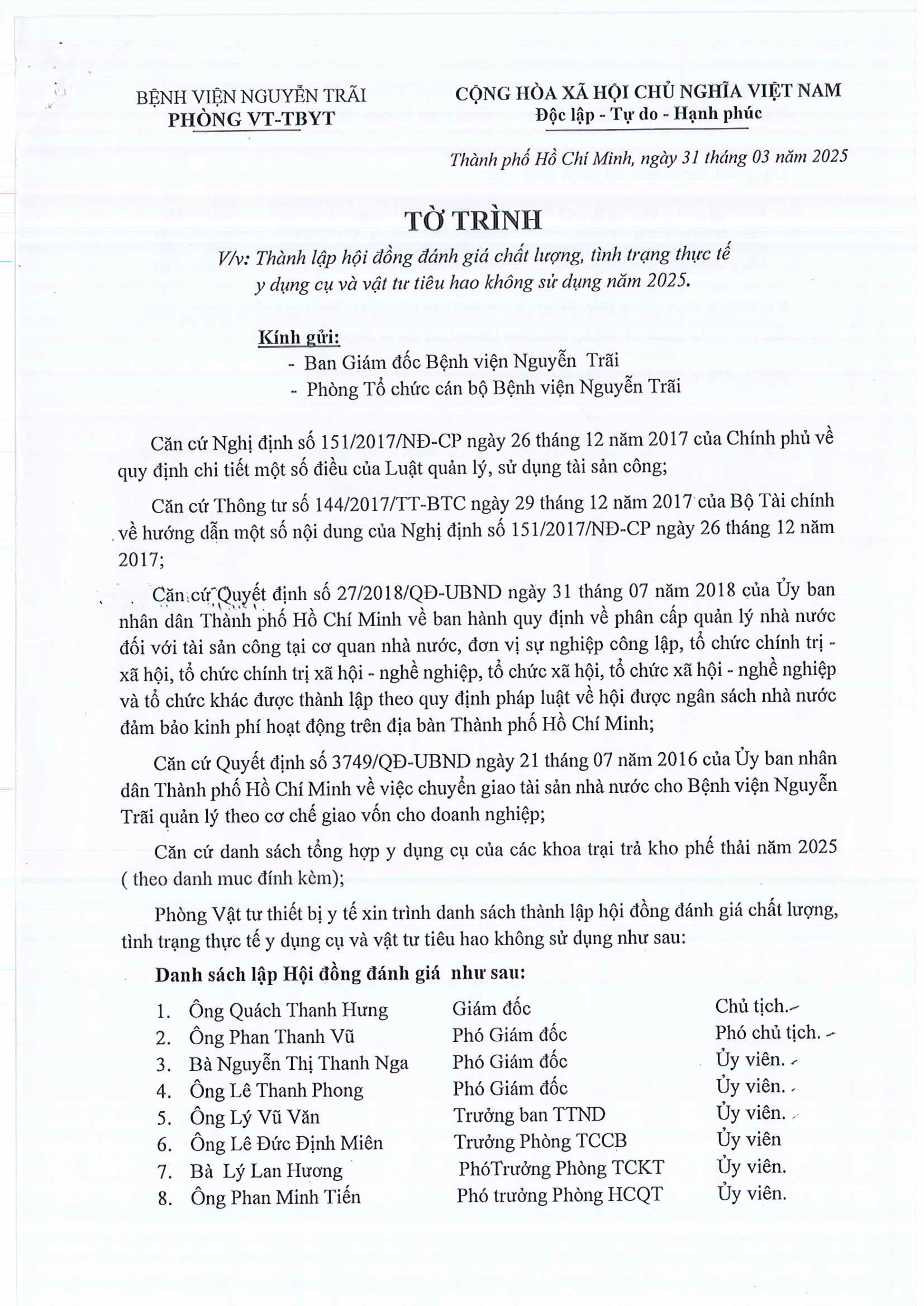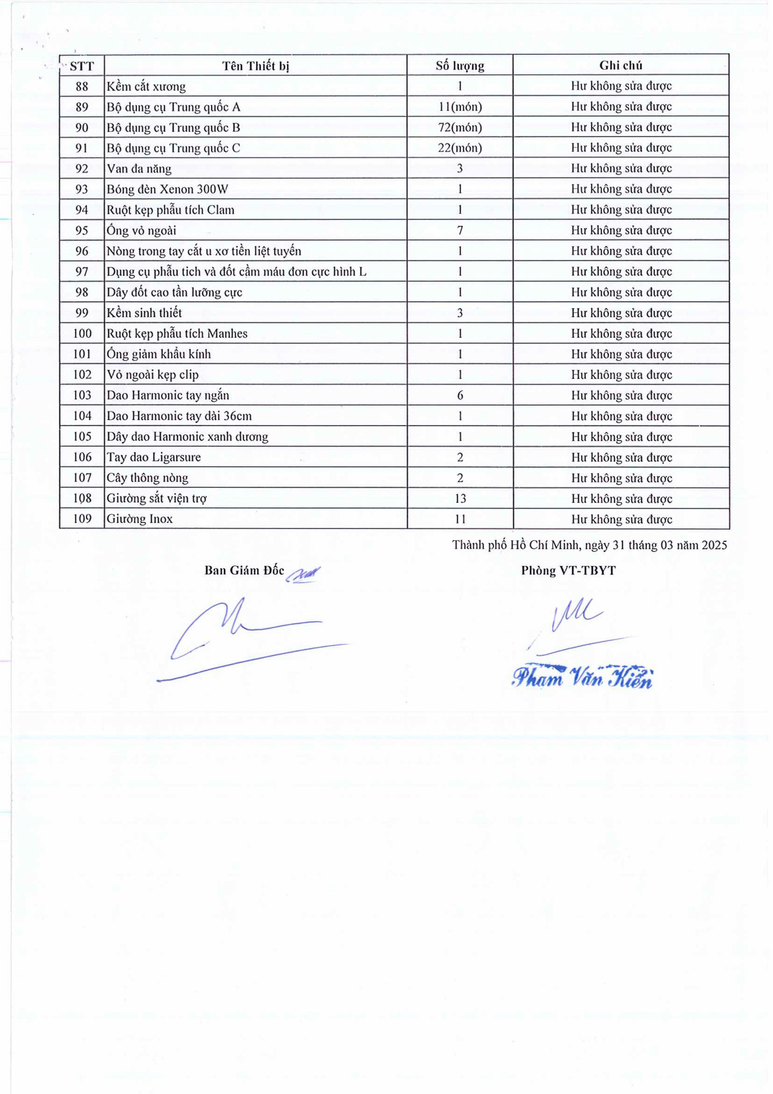 Thư mời chào giá V/V thẩm định giá trị còn lại của y dụng cụ, vật tư tiêu hao để lấy cơ sở thanh lý