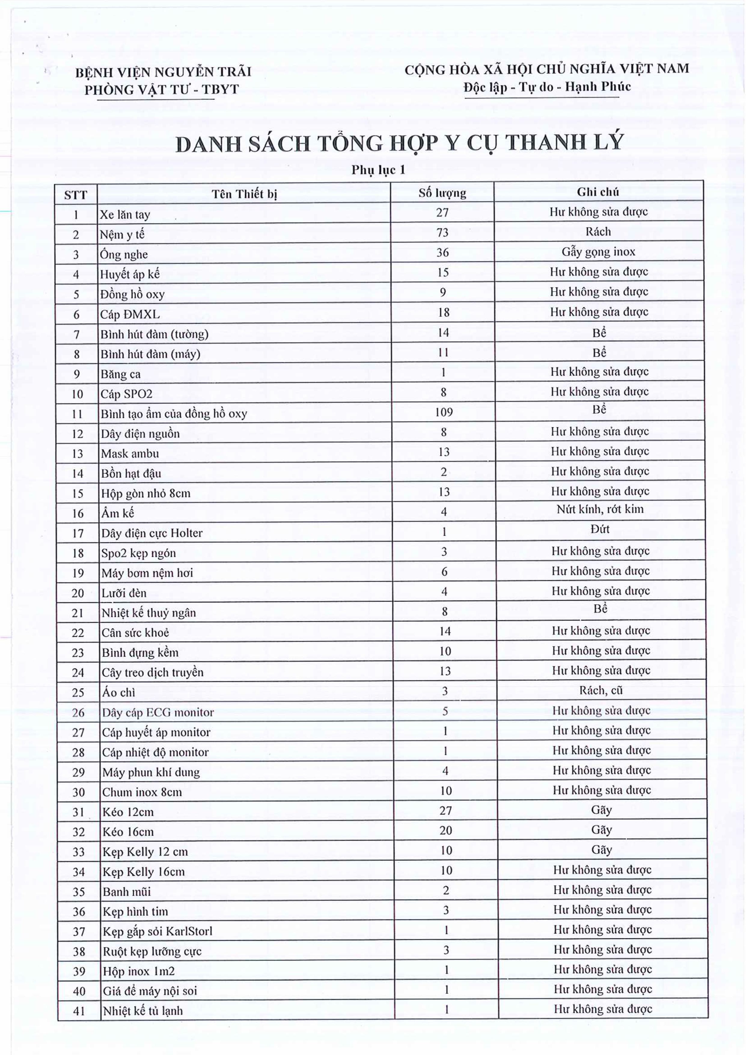 Invitation to bid for participation in the auction of medical instruments and consumables that are no longer usable in 2025.