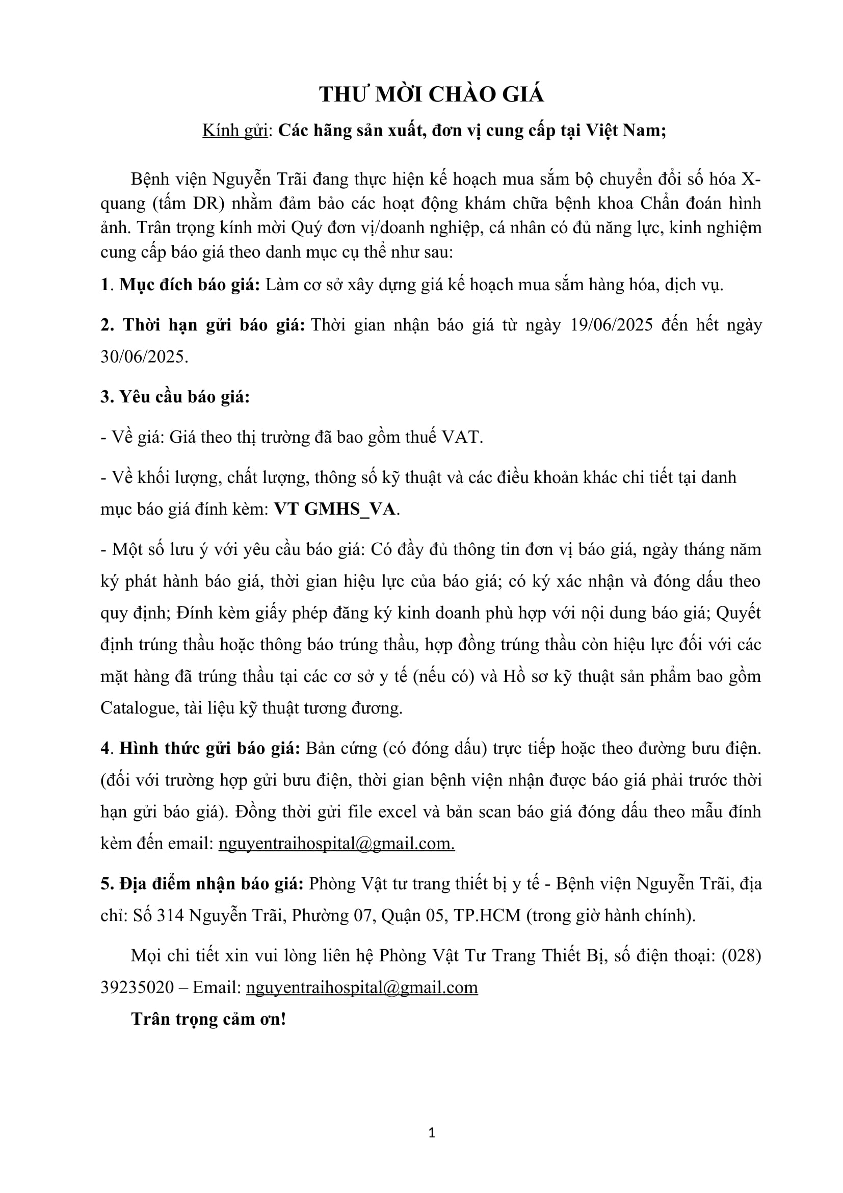 Thư mời chào giá tấm DR